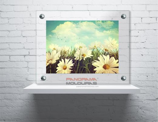 Essa montagem é feita com 2 vidros onde a gravura fica entre os vidros, ficando uma borda transparente entre a gravura.